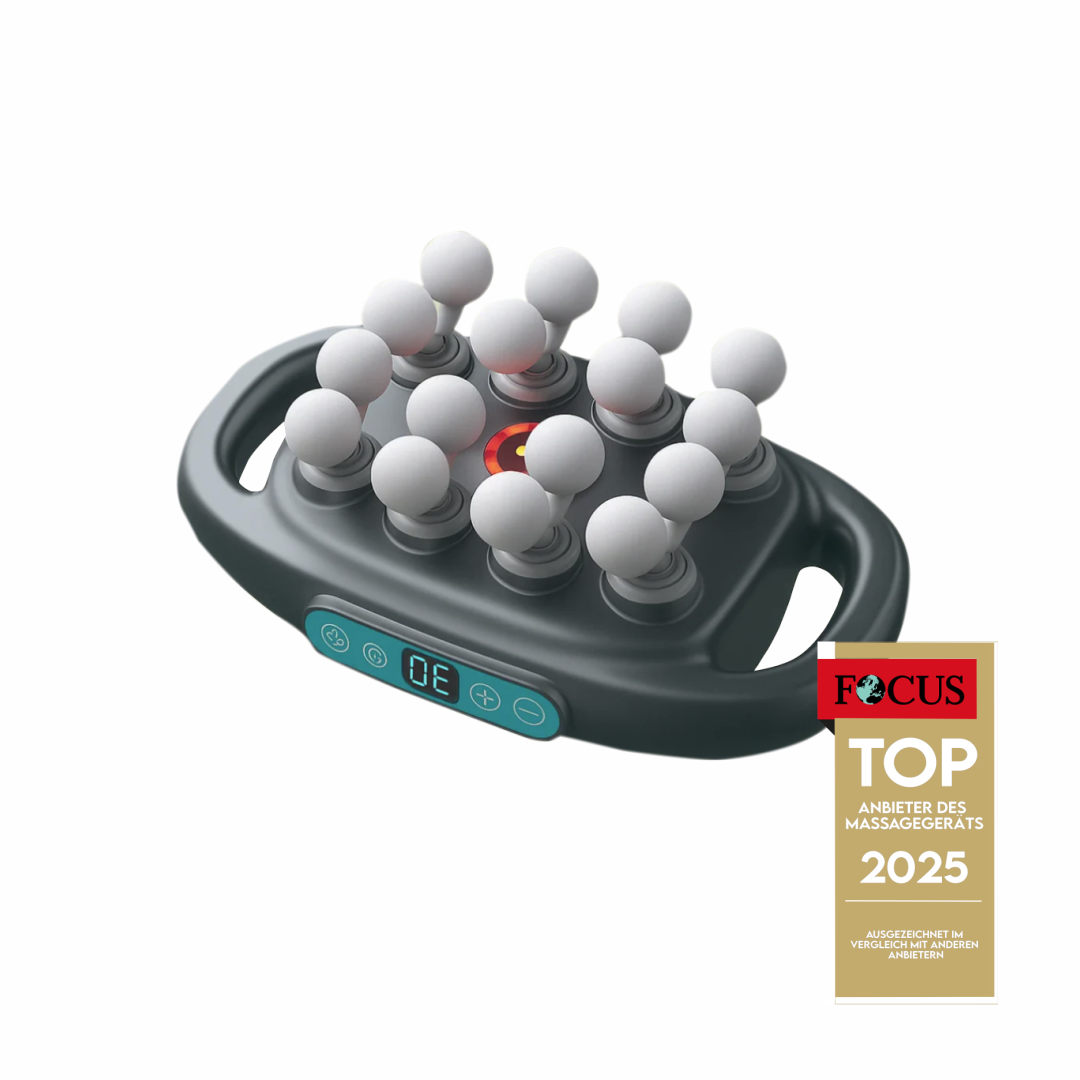 Problem erkannt?Normale Massagepistolen sind zu klein und punktuell – du brauchst ewig, um große Muskelgruppen wie Rücken oder Oberschenkel zu bearbeiten. Dieses 16-Kopf Massagegerät deckt einedeutlich größere Flächeab und löst Verspannungen ineinem Bruchteil der Zeit. Perfekt nach dem Sport, bei Büro-Verspannungen oder wenn du einfach schnell entspannen willst – ohne minutenlang herumzustochern.